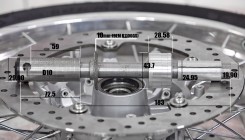 Чтобы установить переднее колесо достаточно выточить новую ось. Диаметр тормозных дисков и расстояние между ними такое же, как на стоковом колесе K1100LT. Соответственно, суппорта полностью совместимы с колесом от GS.
