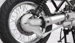 C заменой колесных дисков так же придется заменить тормозные диски (от R1100GS, соответственно) и резину. Мы выбрали комплект Michelin Commander II на 10мм шире стокового. Эта резина отлично подходит для городской езды в разную погоду, а также имеет простой подходящий дизайн. Высококачественные немецкие тормозное диски ABM были установлены на оба колеса (передние тормозные диски плавающие).