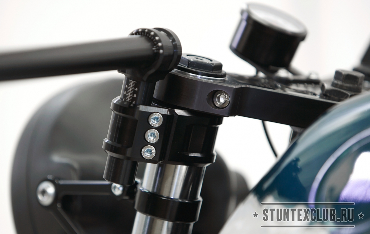 Если в проекте модифицируется рама, бак, рулевая колонка, колеса, водительские подножки, то имеет смысл ставить регулируемые клипоны. Смоделировать посадку на стадии проектирования очень сложно, регулировки это то, что позволит легко настроить мотоцикл под райдера без переделок. На клипонах лучше не экономить. Мы выбрали немецкие регулируемые клипоны ABM, потому что они полностью регулируемые, качественно изготовлены и имеют подходящий дизайн. Дорого, но необходимо: на мотоцикле будет кататься почти вся наша команда.