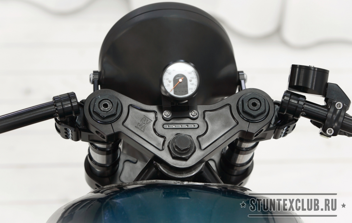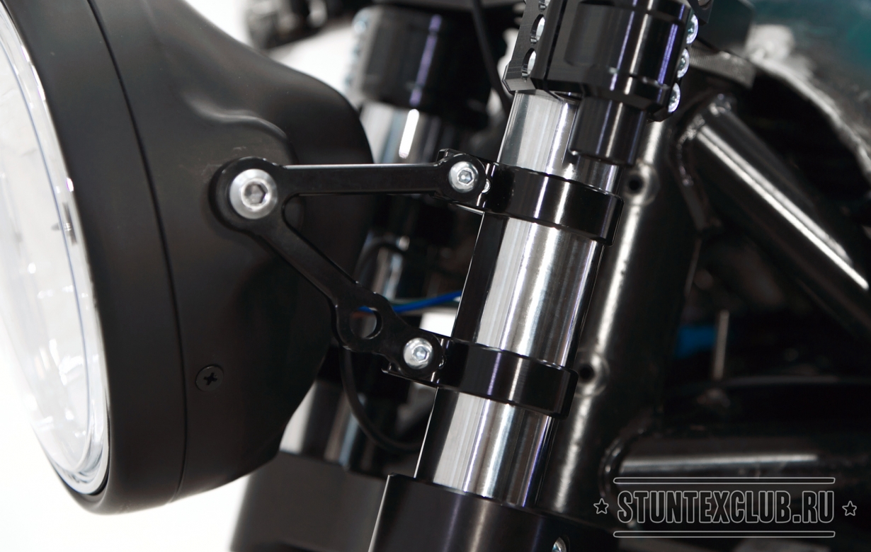 Стоковые траверсы не годятся из-за геометрии и громоздкого вида: у них слишком большой туристический вынос и слишком толстая верхняя траверса, которая перегружает рулевую. Для городского мотоцикла вынос должен быть меньше - это ухудшит его устойчивость на прямой, но сделает острее отклик на контрруление для более легкого наклона и быстрых маневров, что в городе важнее. Мы уменьшили вынос на 4мм. Это надо учитывать при расчете длины вилки и выборе резины. Точно все расчитать сложно, есть погрешность, поэтому установка регулируемого заднего амортизатора обязательный сетап на подобных проектах - он позволит компенсировать ошибки в расчетах. Также уменьшение выноса рулевой может потребовать установку рулевого демпфера - это будет понятно после тестовых заездов.