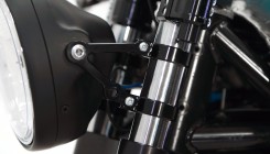 Наконец-то готовы все части вилки, ее можно поставить и взглянуть на мотоцикл в сборе. Вилка одна из самых сложных частей мотоцикла, она должна иметь подходящие характеристики и завершенный заводской вид. Из-за установки новых колес и модификации рамы пришлось укоротить перья, изменение типа мотоцикла с туристического на городской потребовало изменить параметры рулевой колонки. При этом пришлось сделать кучу кастом запчастей, чтобы все совмещалось и гармонично смотрелось. Далее читайте подробнее о каждой части отдельно, о трудностях, с которыми пришлось столкнуться, и о тонкостях, которые необходимо учитывать при их проектировании и создании.